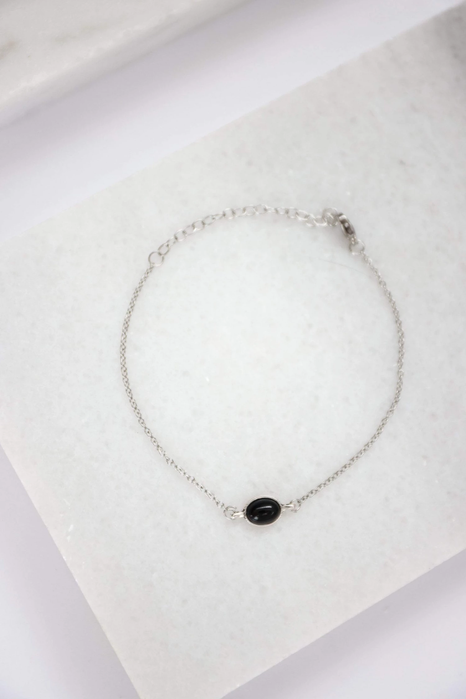 A handmade silver plated bracelet with a cute black stone!You can match it with silver rings for a boho vibe or additional colorful bracelets It has an adjustable fit so it fits everyone!