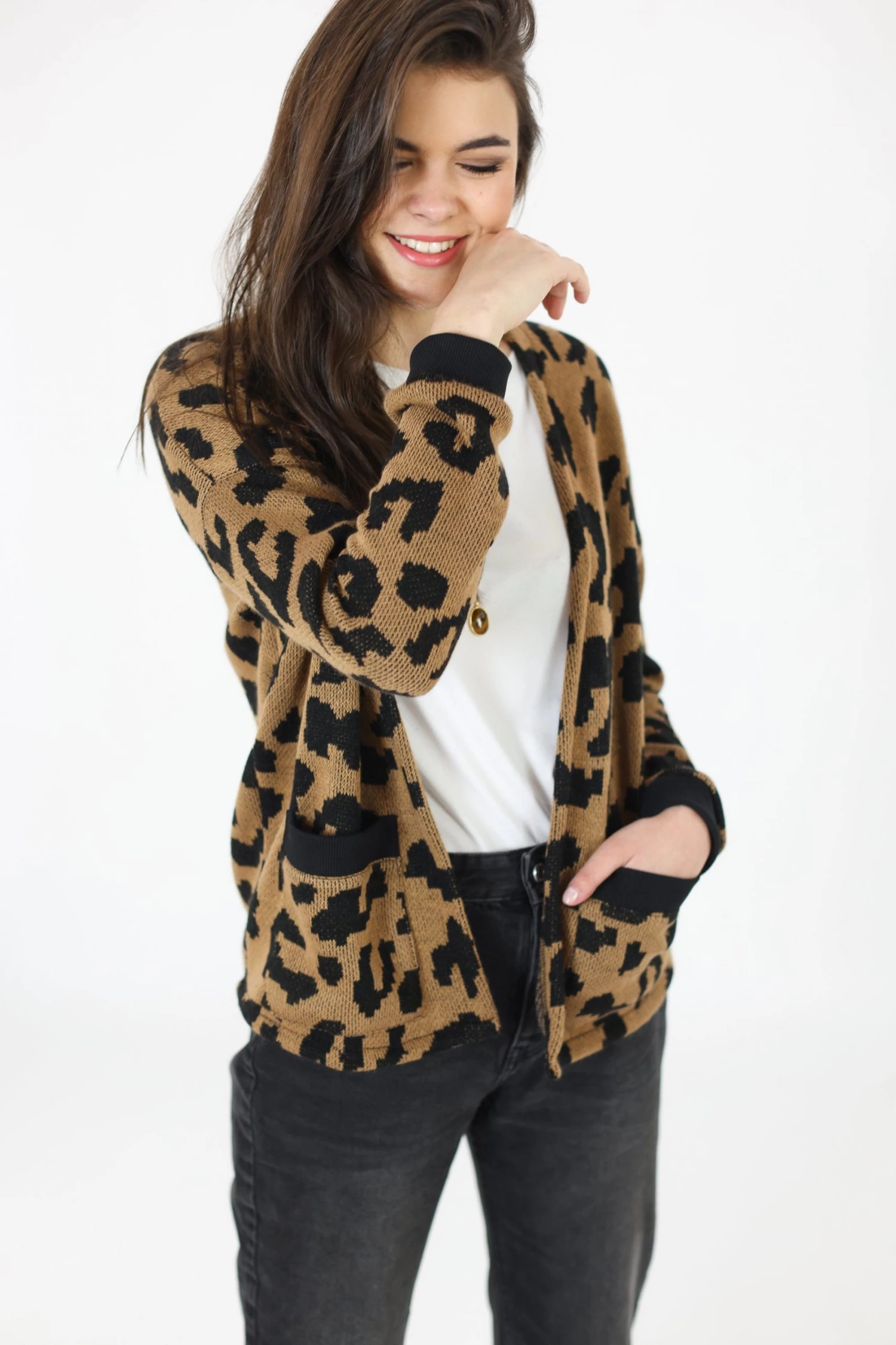 Cardigan ῾Teeny῾ leopard. Made from knitted fabric, warm and comfy. Animal and special print allover, chick and trendy. Front open design and twin side pockets. Long sleeves, short cut with a normal fit. Wear this over your everyday outfit for the most modish outwear piece for the cooler season!