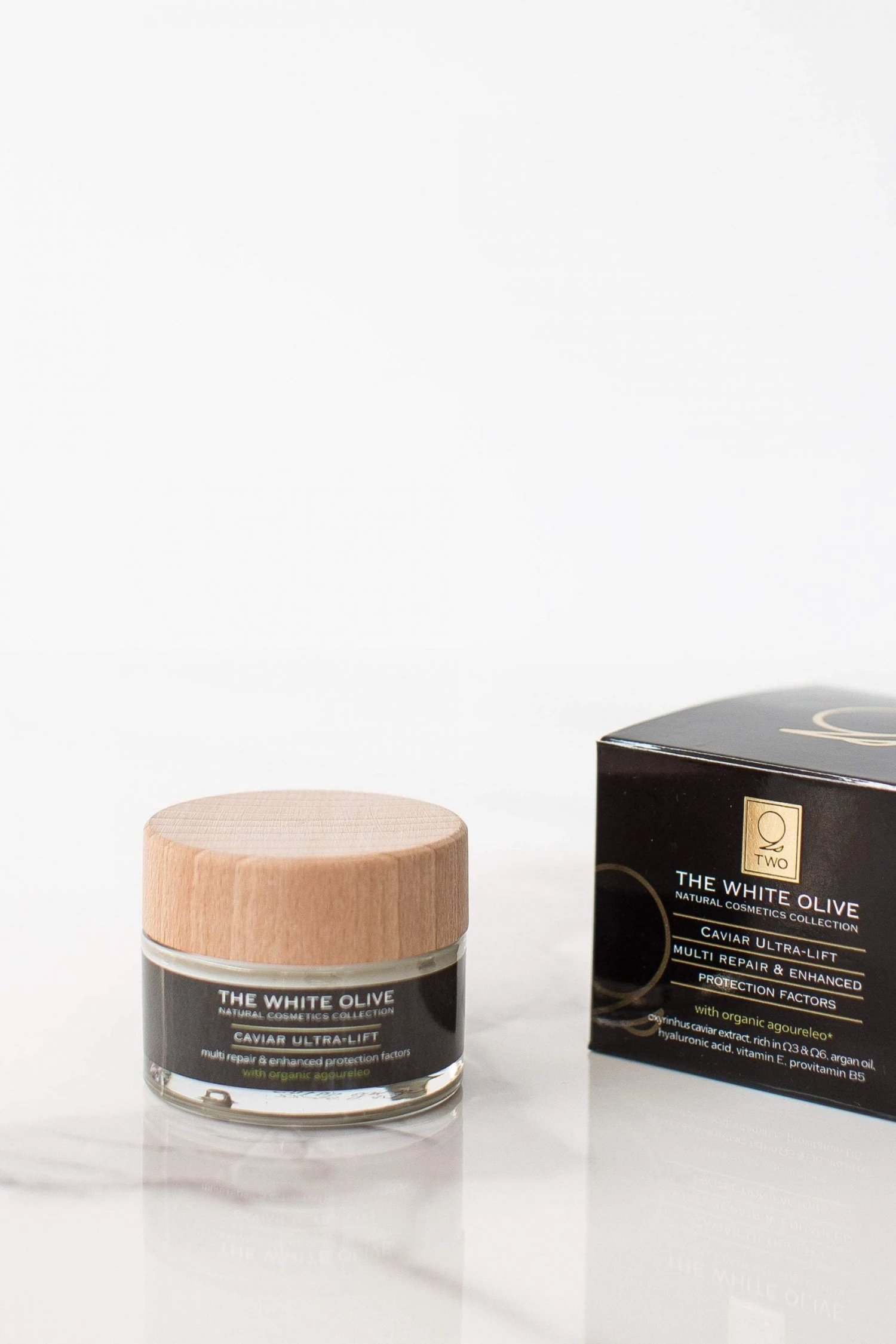 With organic agoureleo (olive oil from unripe olives, green olive oil)Â , argan oil, hyaluronic acid, vitamin E, provitamin B5 and lecithin that capture free radicals and smooth wrinkles and thin lines. Dextran eases puffiness, stimulating blood circulation, while L-ornithine and phospholipids delay the signs of aging, activating lipogenesis and improving skin elasticity.