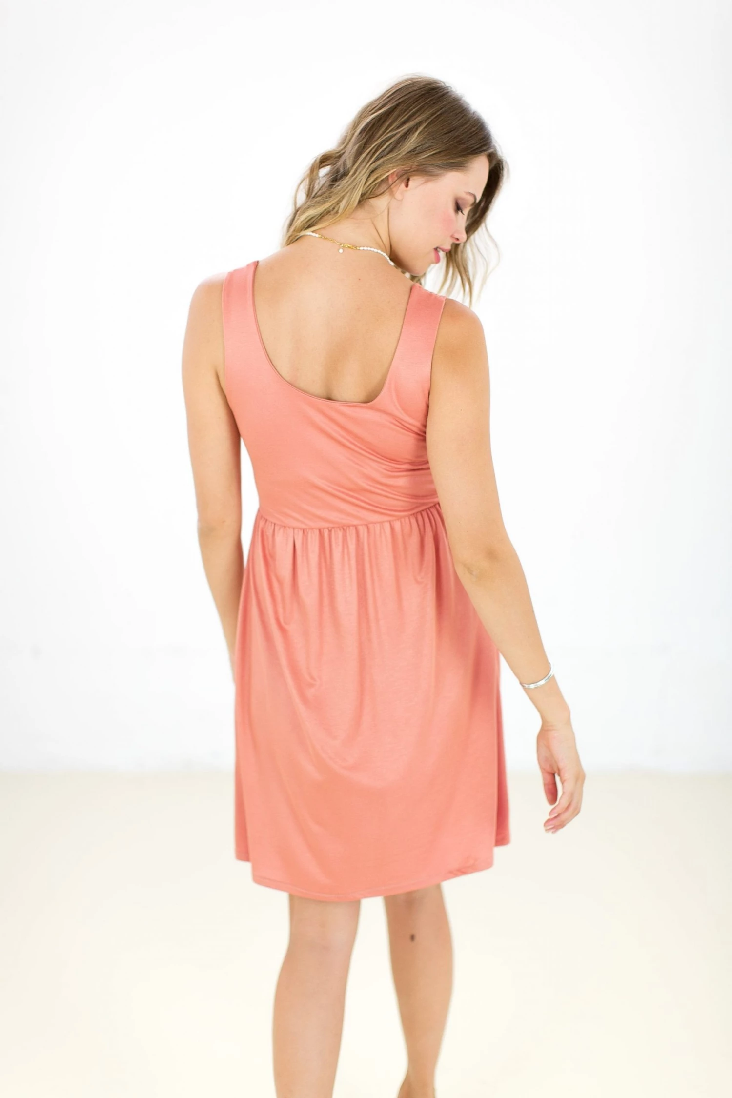 The sweet, peach – coloured dress Maya with discrete cream lace details. The babydoll cut with its elastic waist is super comfortable and will make you look chic and sexy. Style it with your favourite sandals or sneakers and get ready to seize the day!