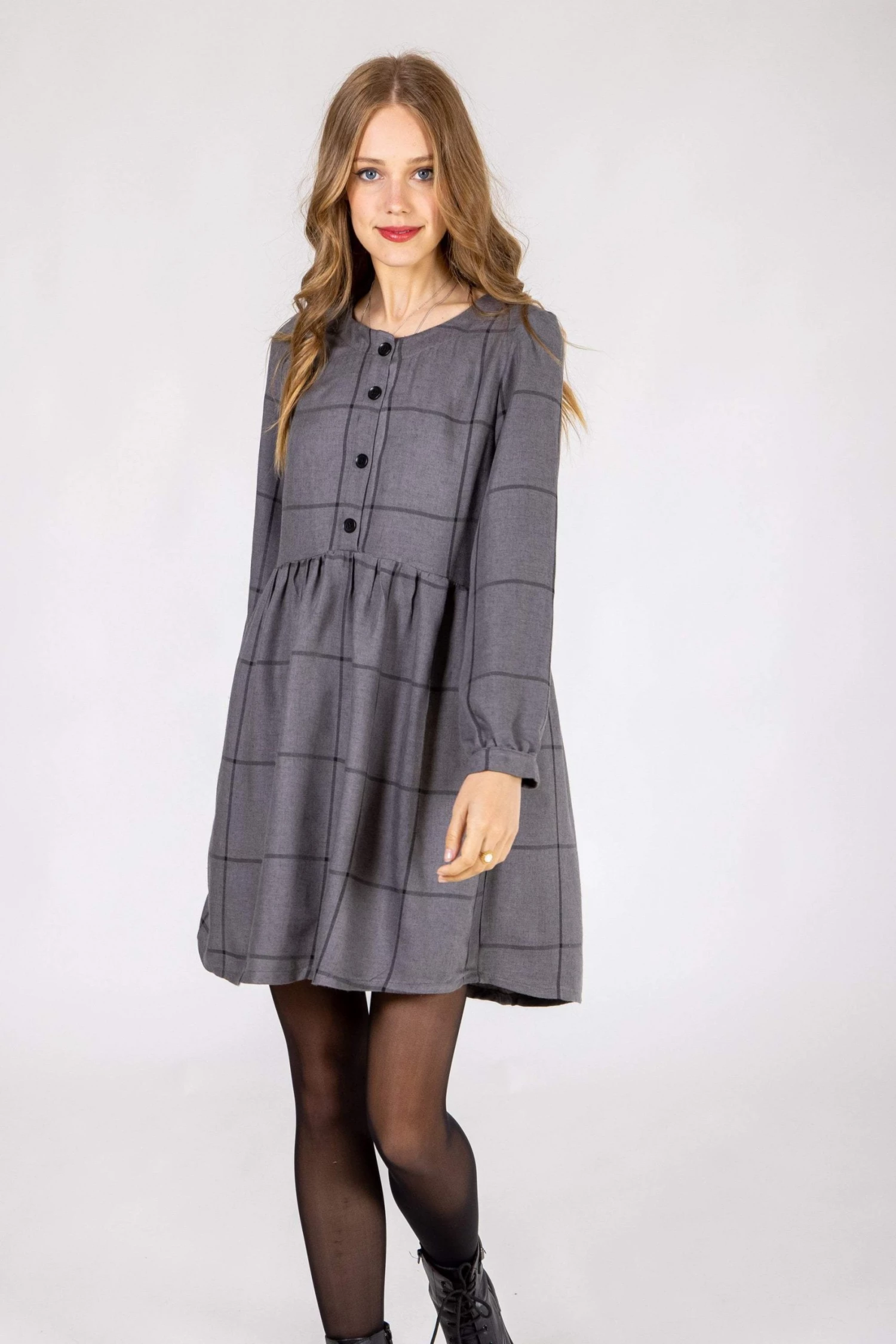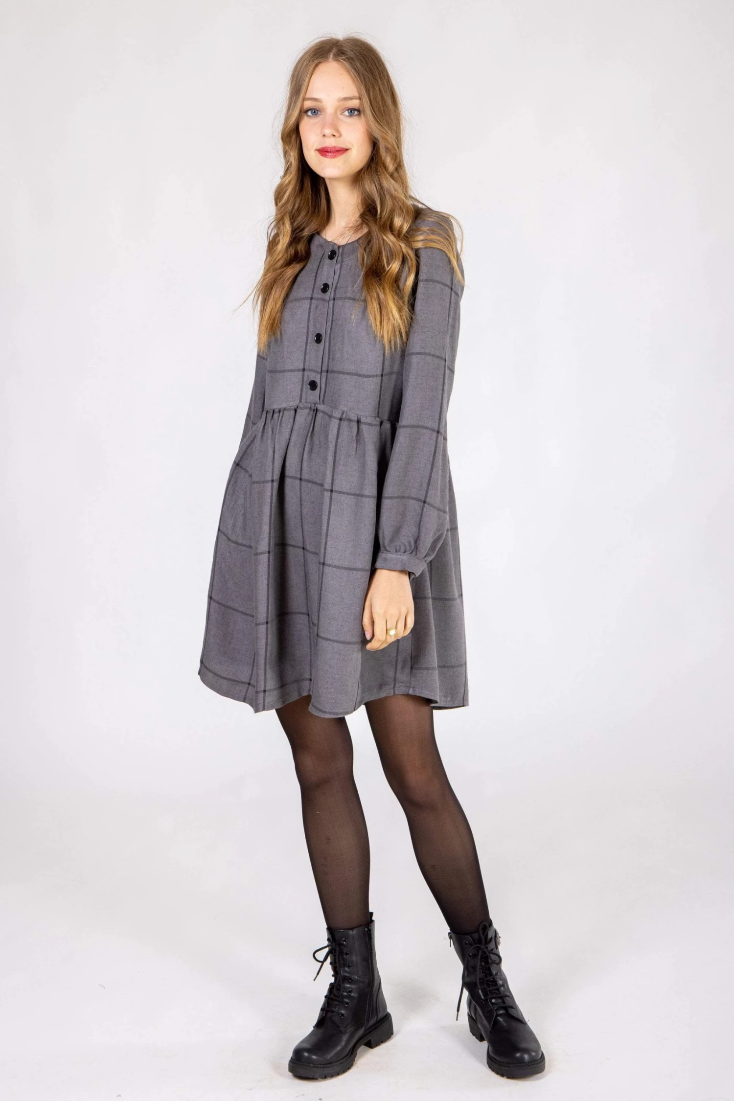 Dress ‘Anisa’ crafted from a dark grey checkered colour. Loose fit, low cut on the chest and cute side pockets!An elegant design which you can match with your fav boots for a morning look or with some heeled and funky sheer tights for a night out! Make it yours now!