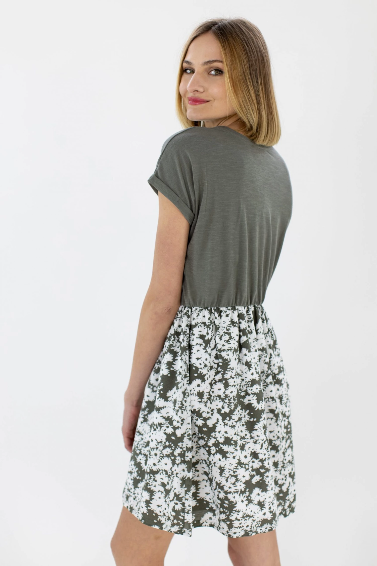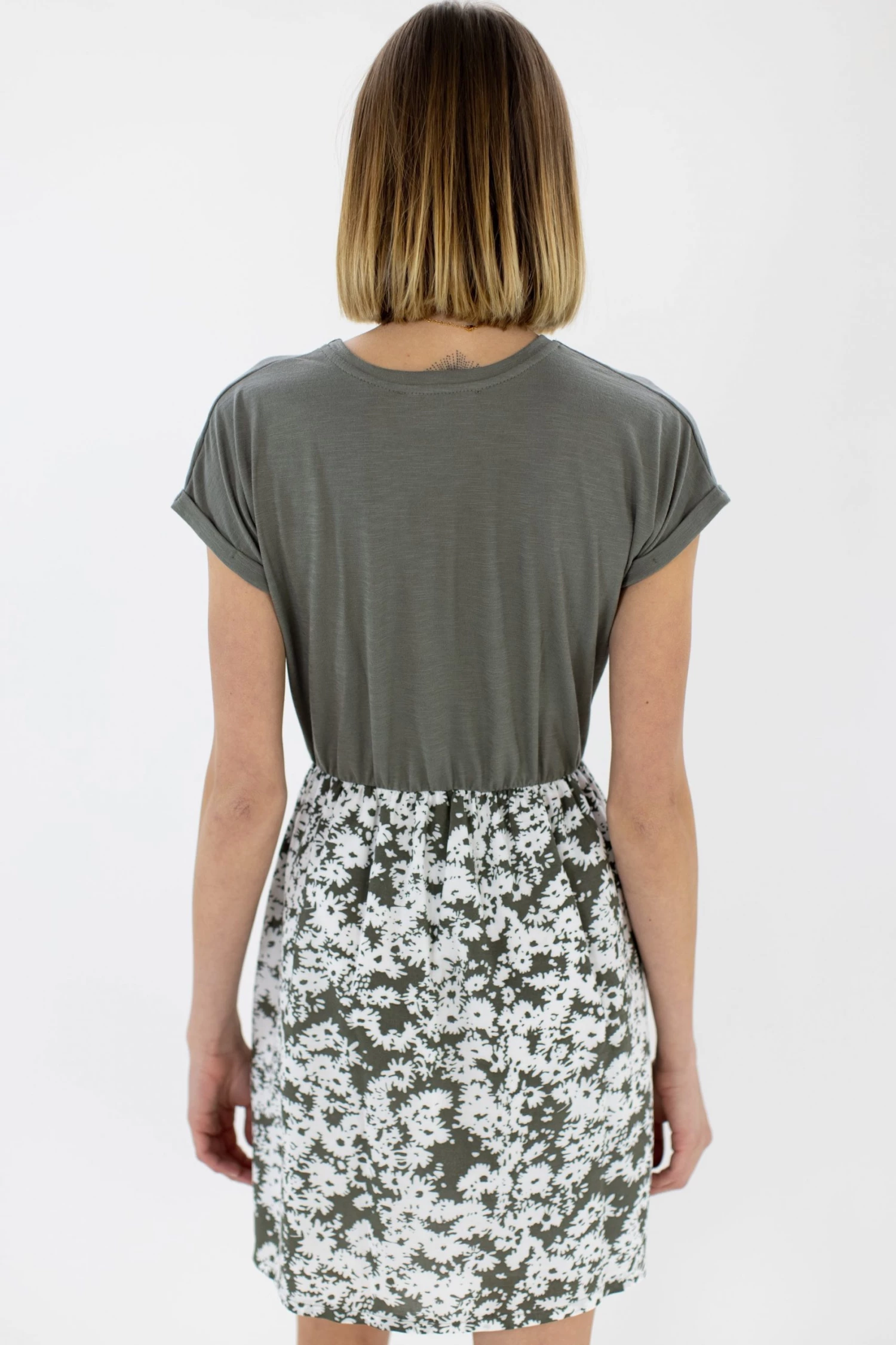 - Top part in khaki colour made of cotton