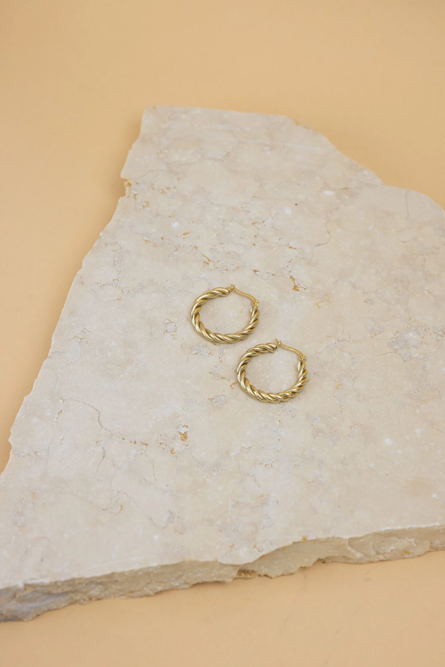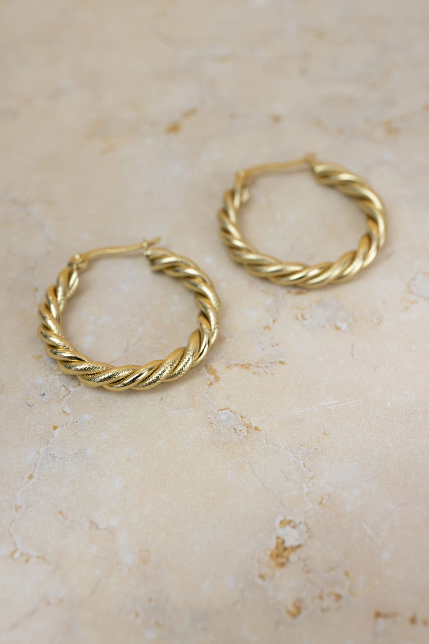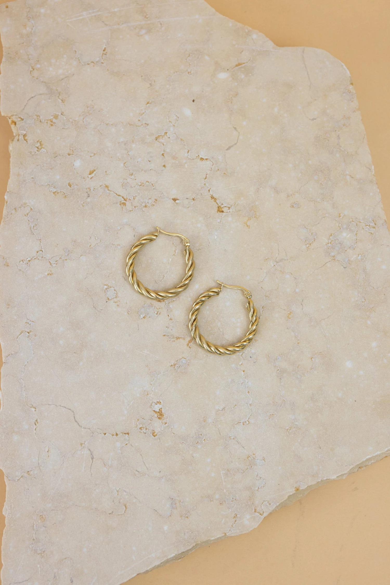 Cute braided hoop earrings in gold. Very subtle but elegant for your special nights-out! It is guaranteed to become your favourite jewellery for this season. Boho vibes!