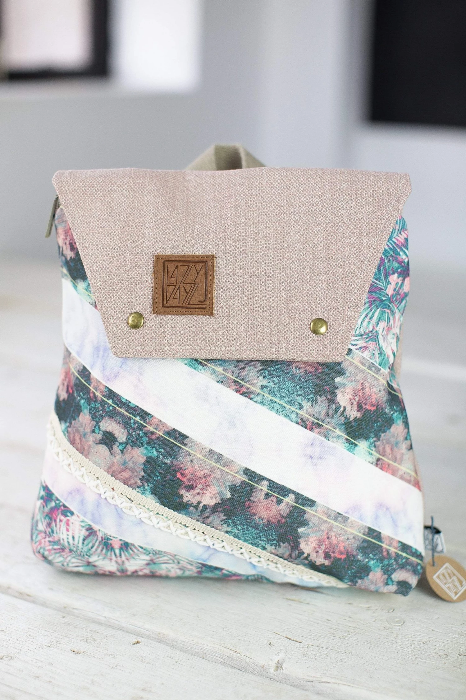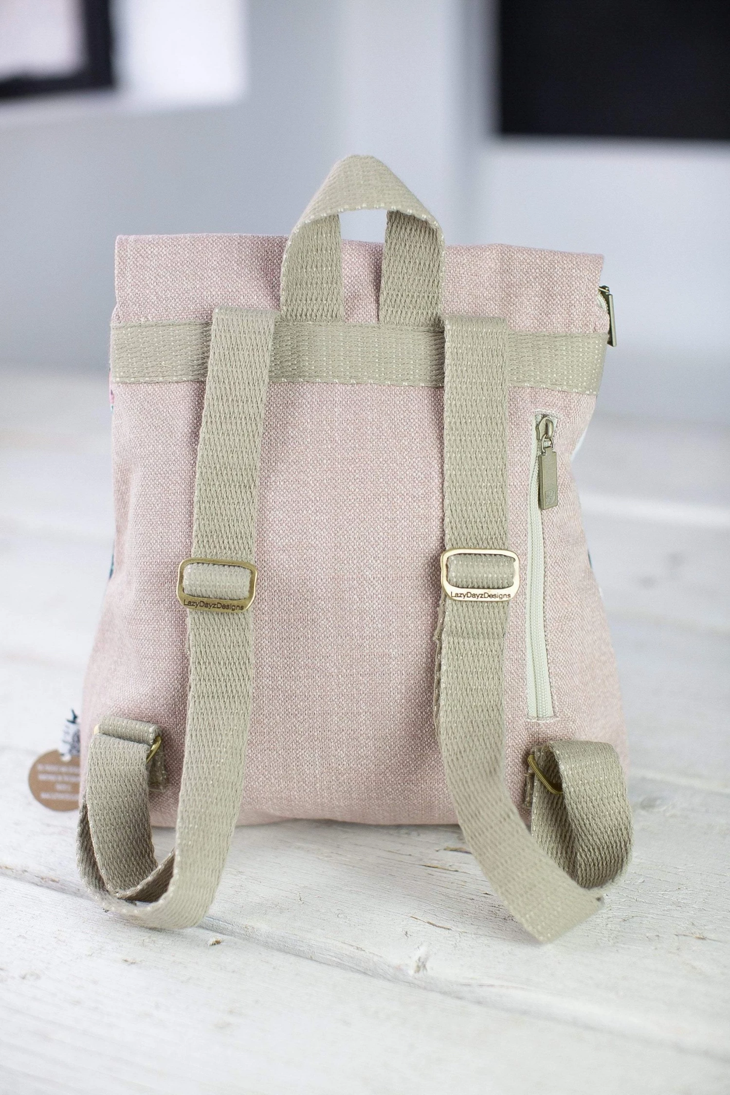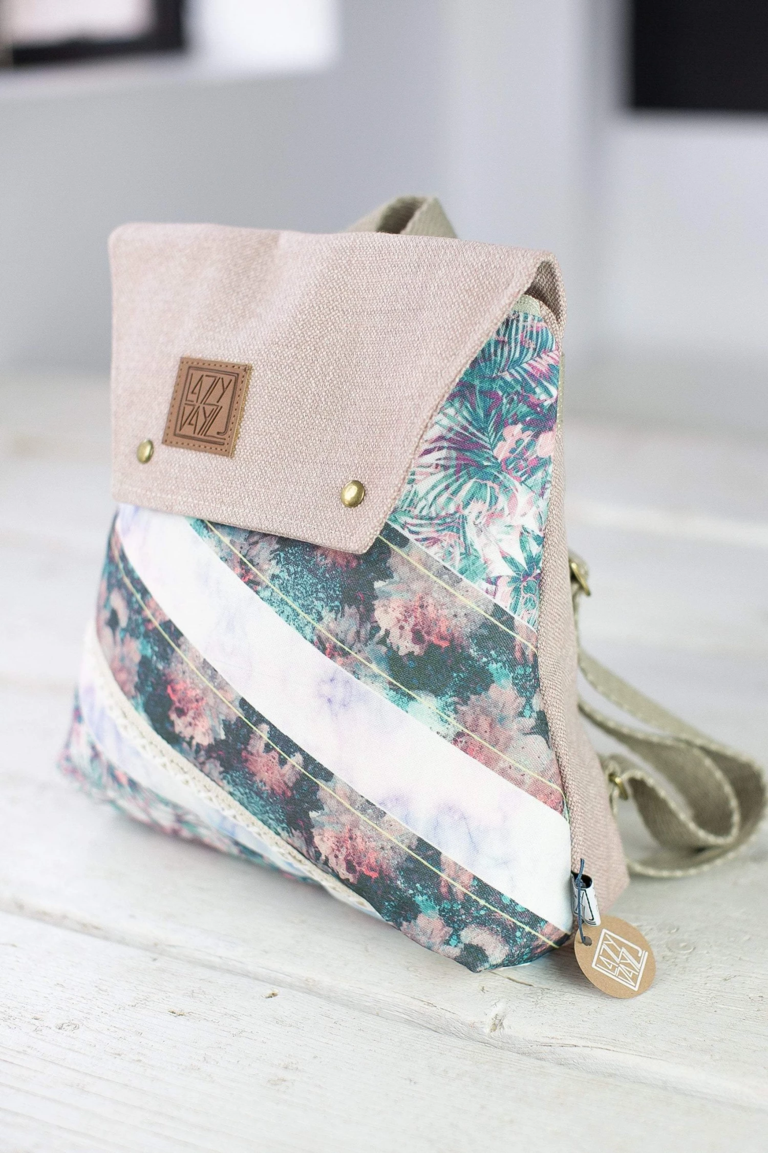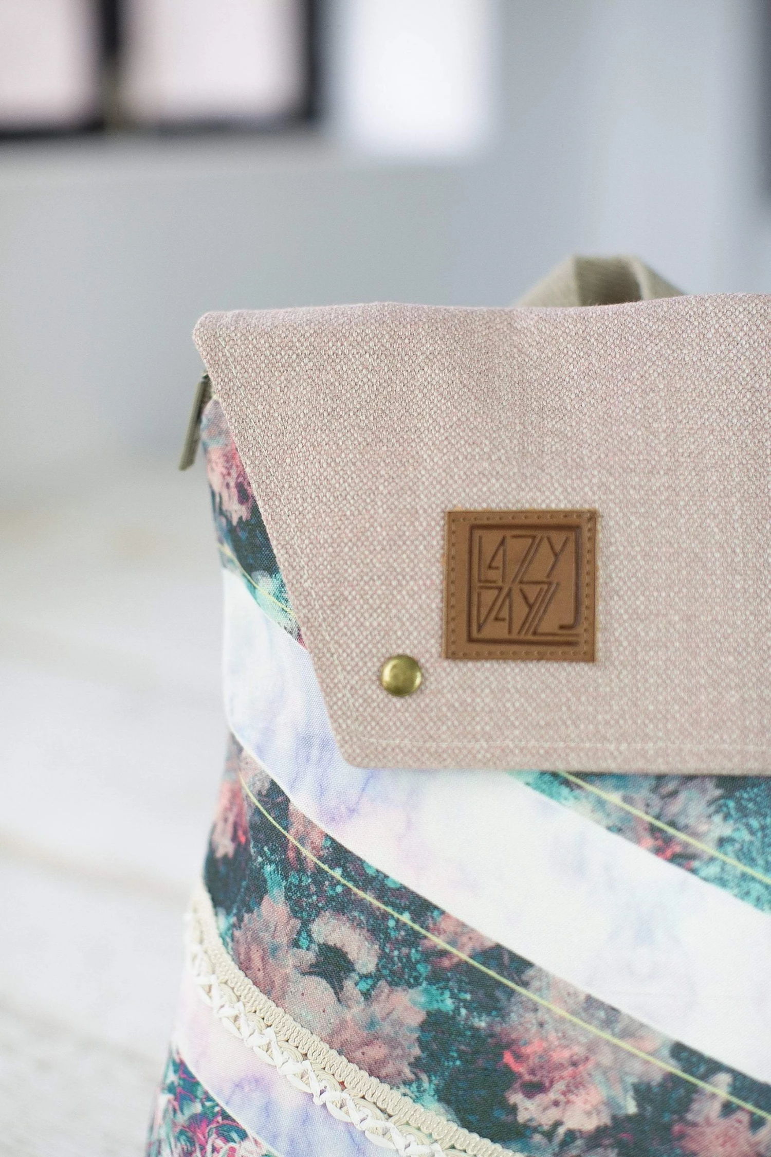 Mini backpack Marseille in romantic colours and prints. This backpack has a beige coloured cup and multi-coloured marbly and floraly patterns. You’ll absolutely adore this dreamy, well designed backpack with one outside zipped pocket and two inside. All these are combined in a soft terrycloth-like material! It gives an elegant touch to a casual look and it certainly makes everybody wonder where you’ve got it from!