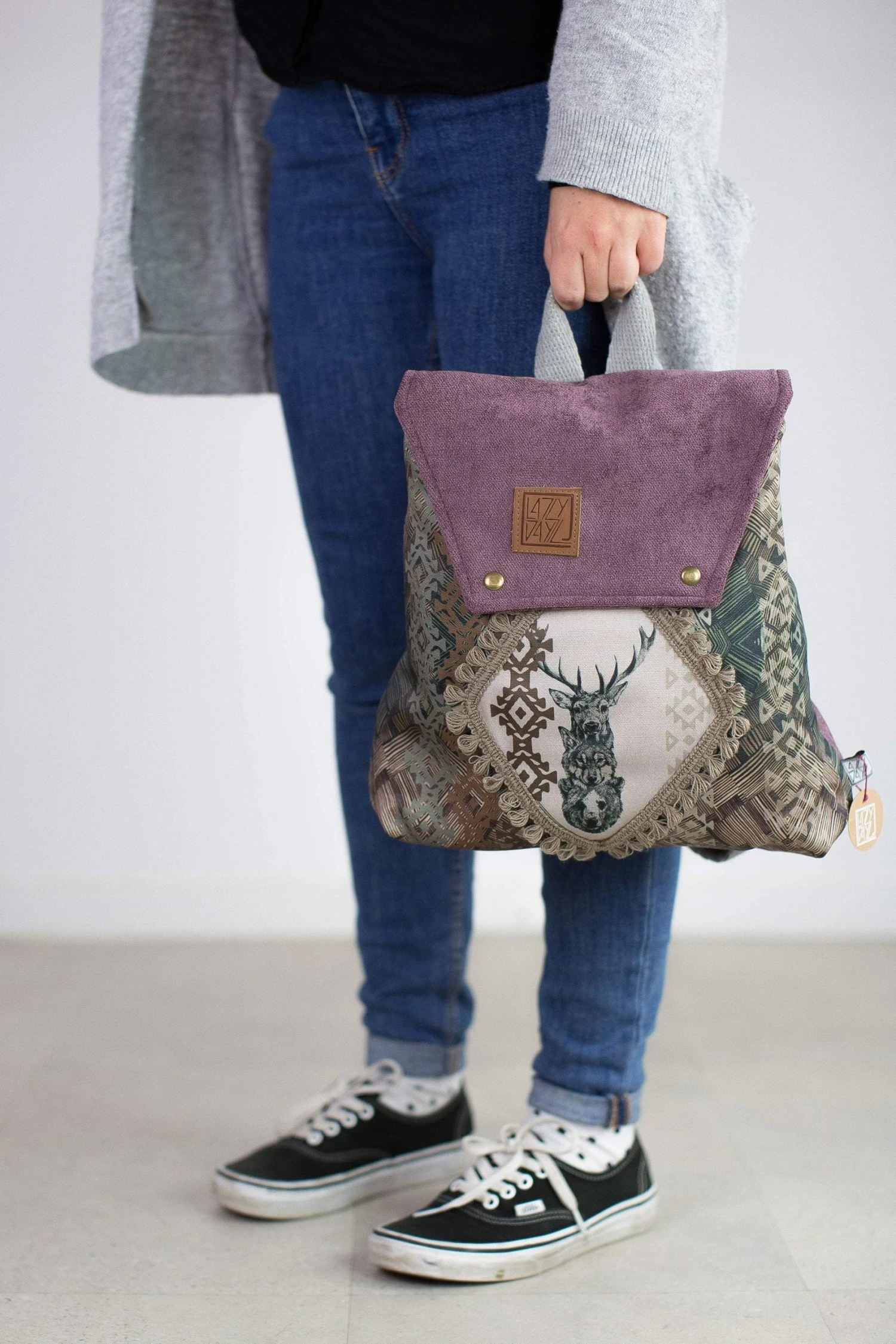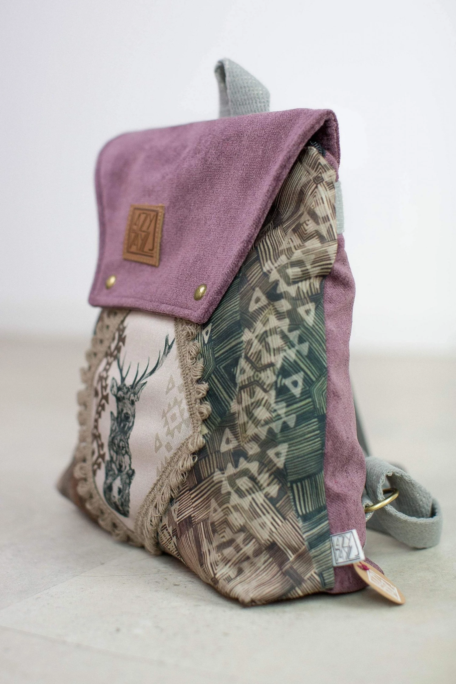 Mini backpack Millwaukee in purple colours. This backpack has a purple coloured cup and a deer design in beige, grey and blue colours. You’ll absolutely adore this well designed backpack with one outside zipped pocket and two inside. All these are combined in a soft terrycloth-like material! It gives an elegant touch to a casual look and it certainly makes everybody wonder where you’ve got it from!