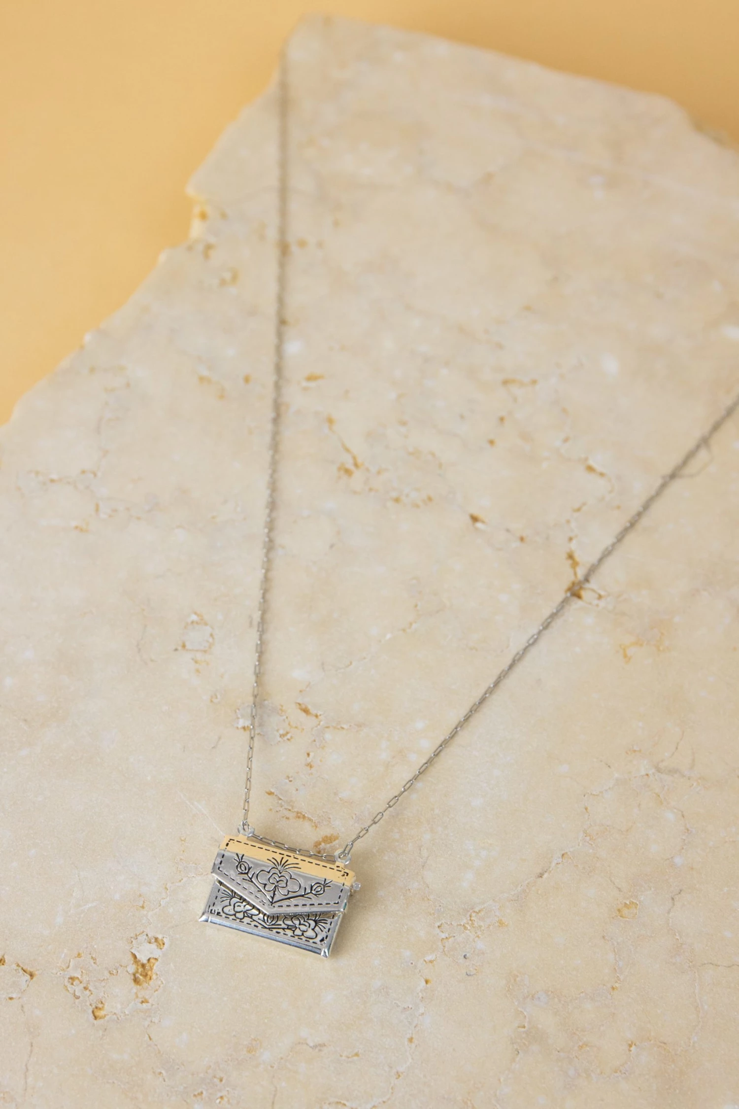 A very elegant necklace! A long chain silver plated steel decorated with a beautiful envelope ! You can write your own personalized message inside!Fun!!