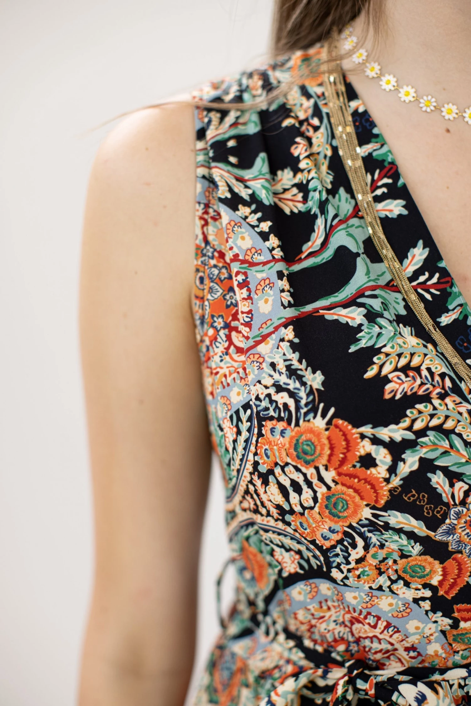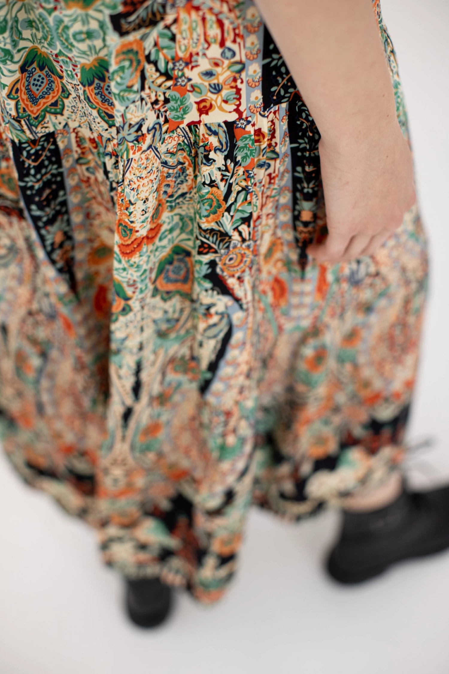 - Black colour with white, orange & green floral pattern