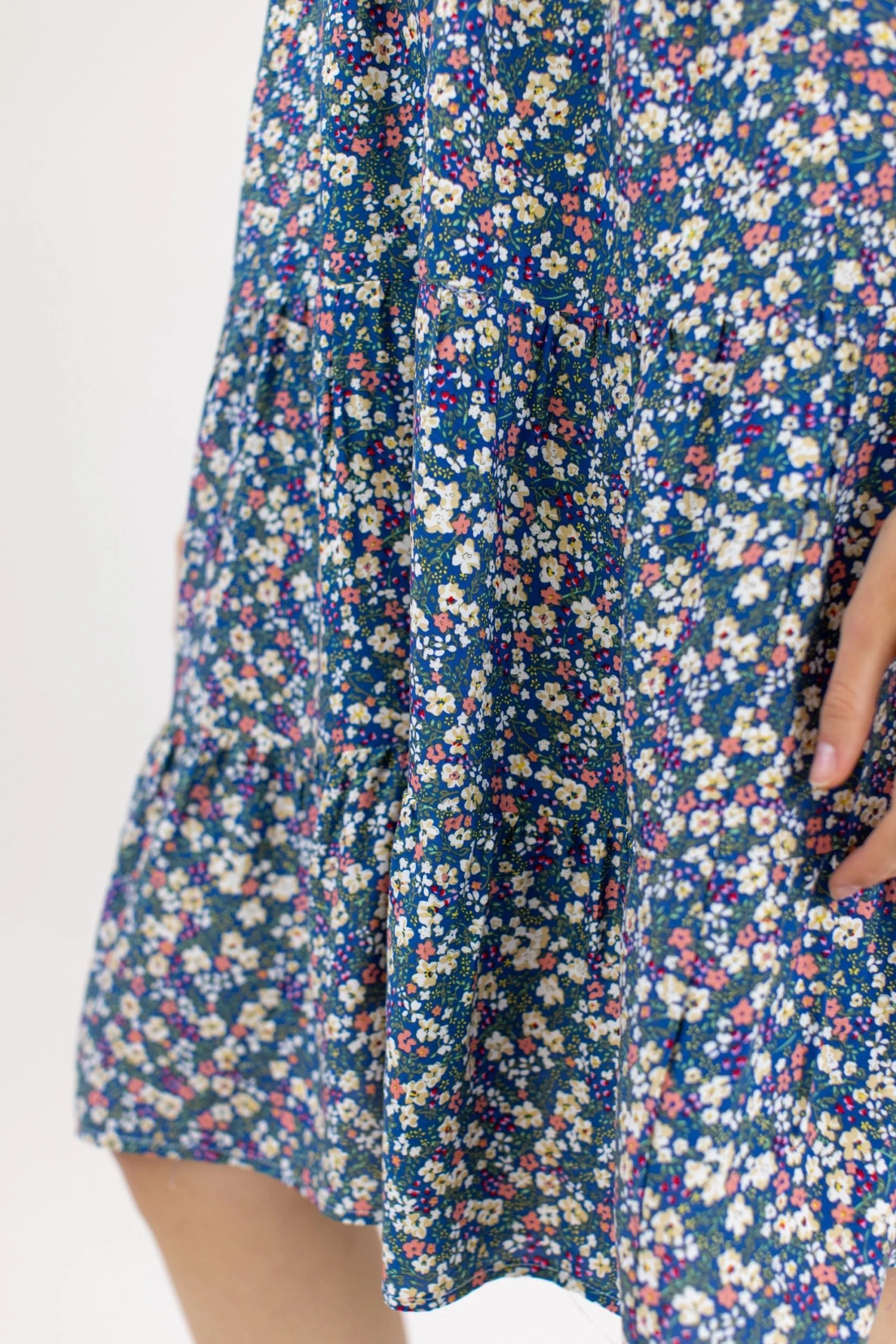 - Blue raf color with coral, green & white floral