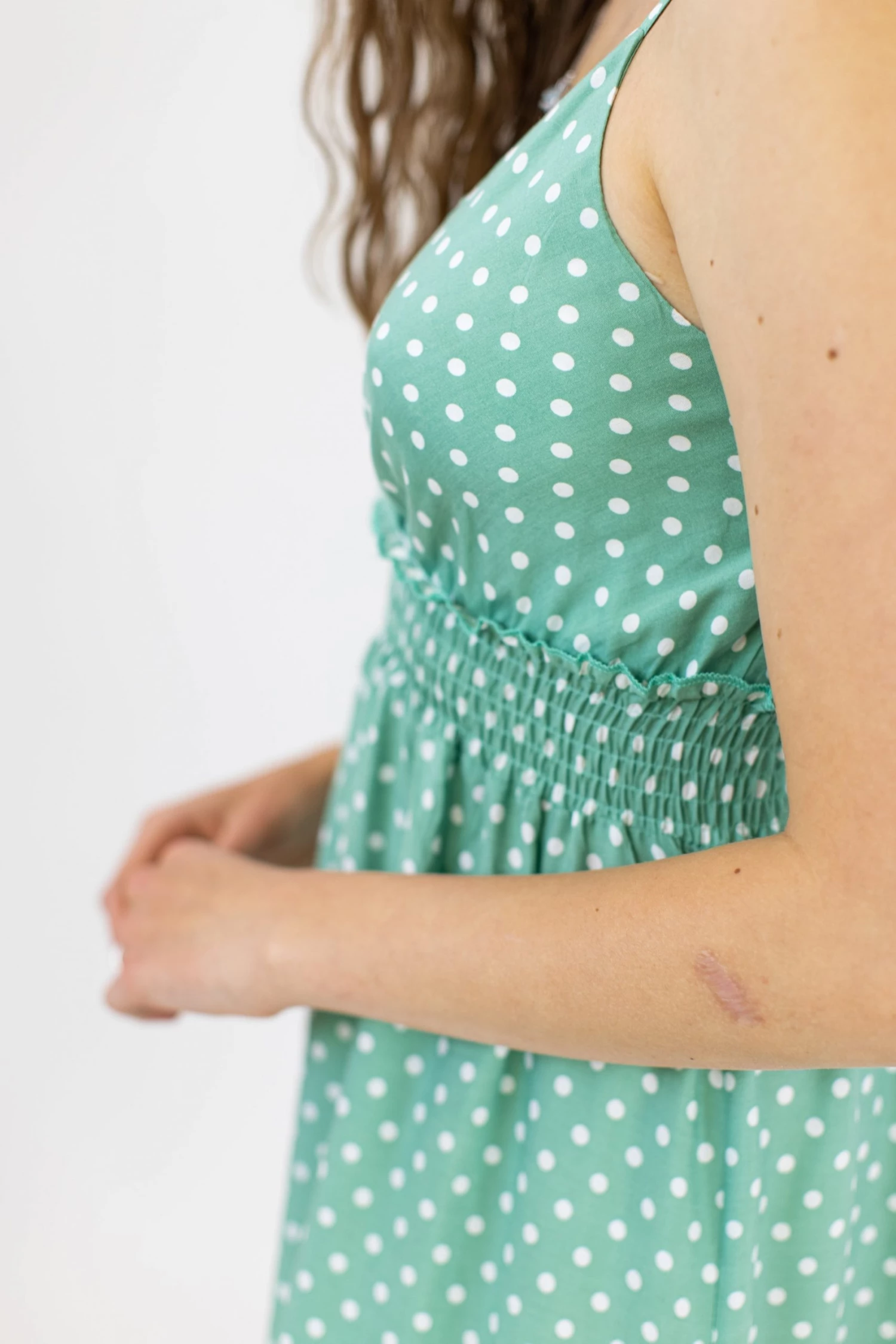 - Pistachio green & white polka dot pattern