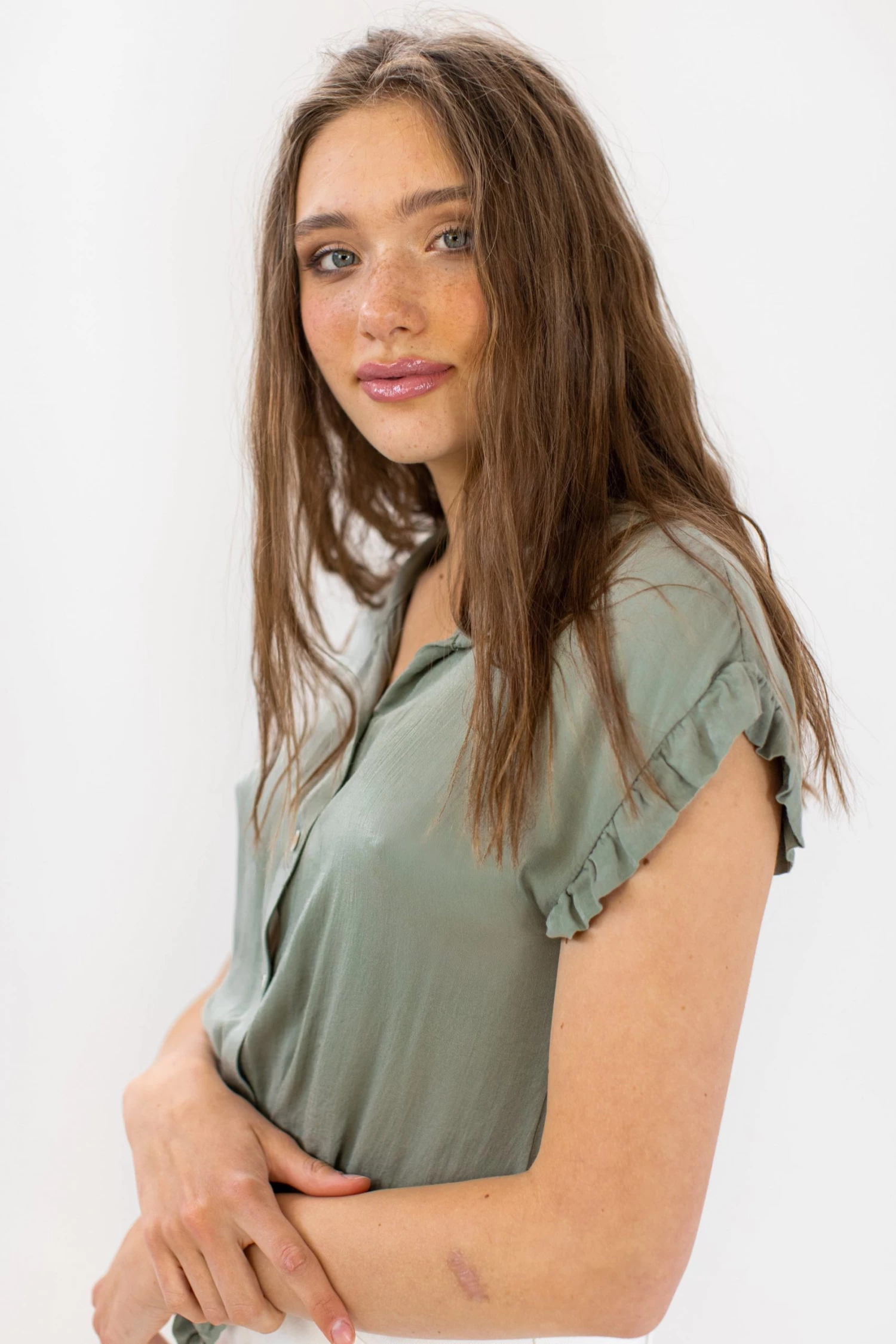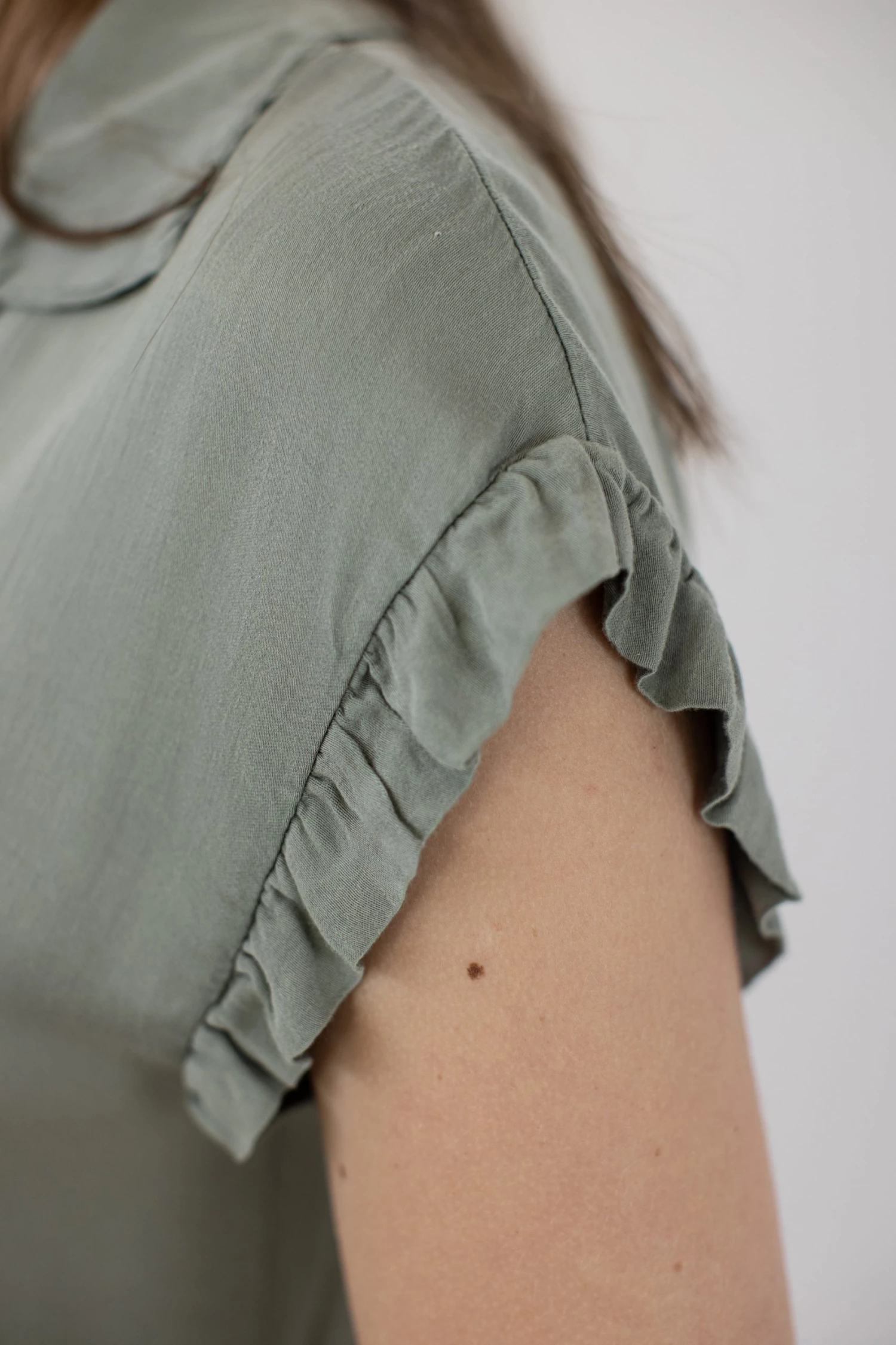 - Short sleeves with ruffle edges