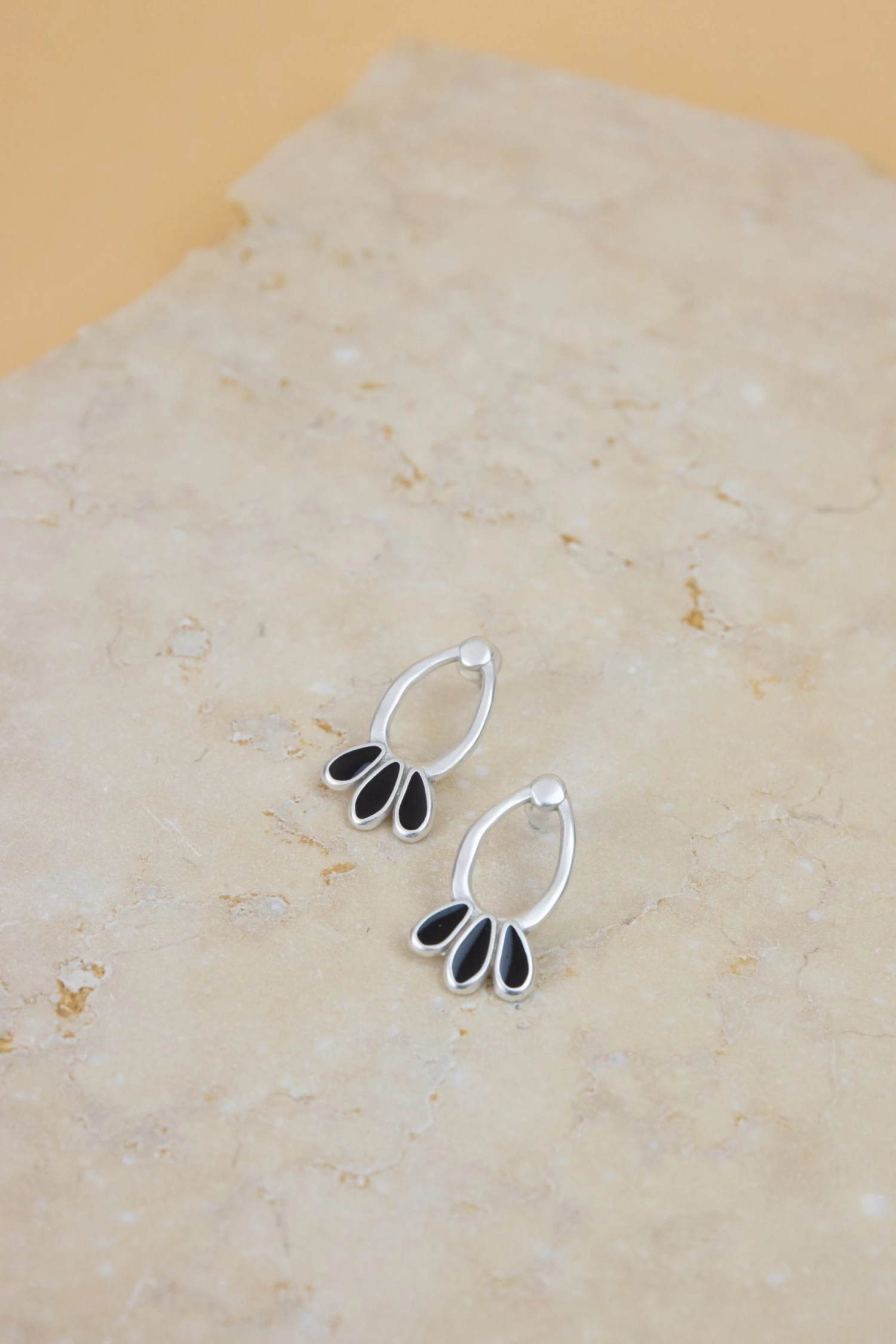 A pair of Silver plated flower earrings with black details! Boho yet elegant for all occasions!Â