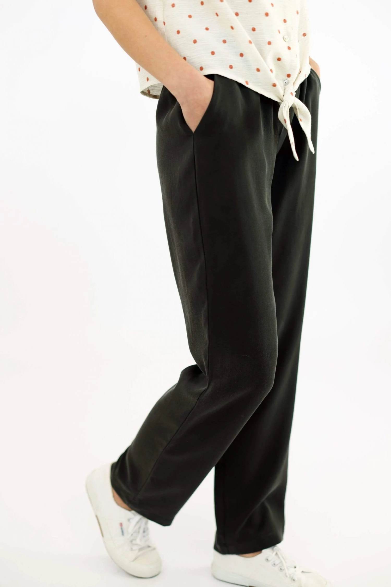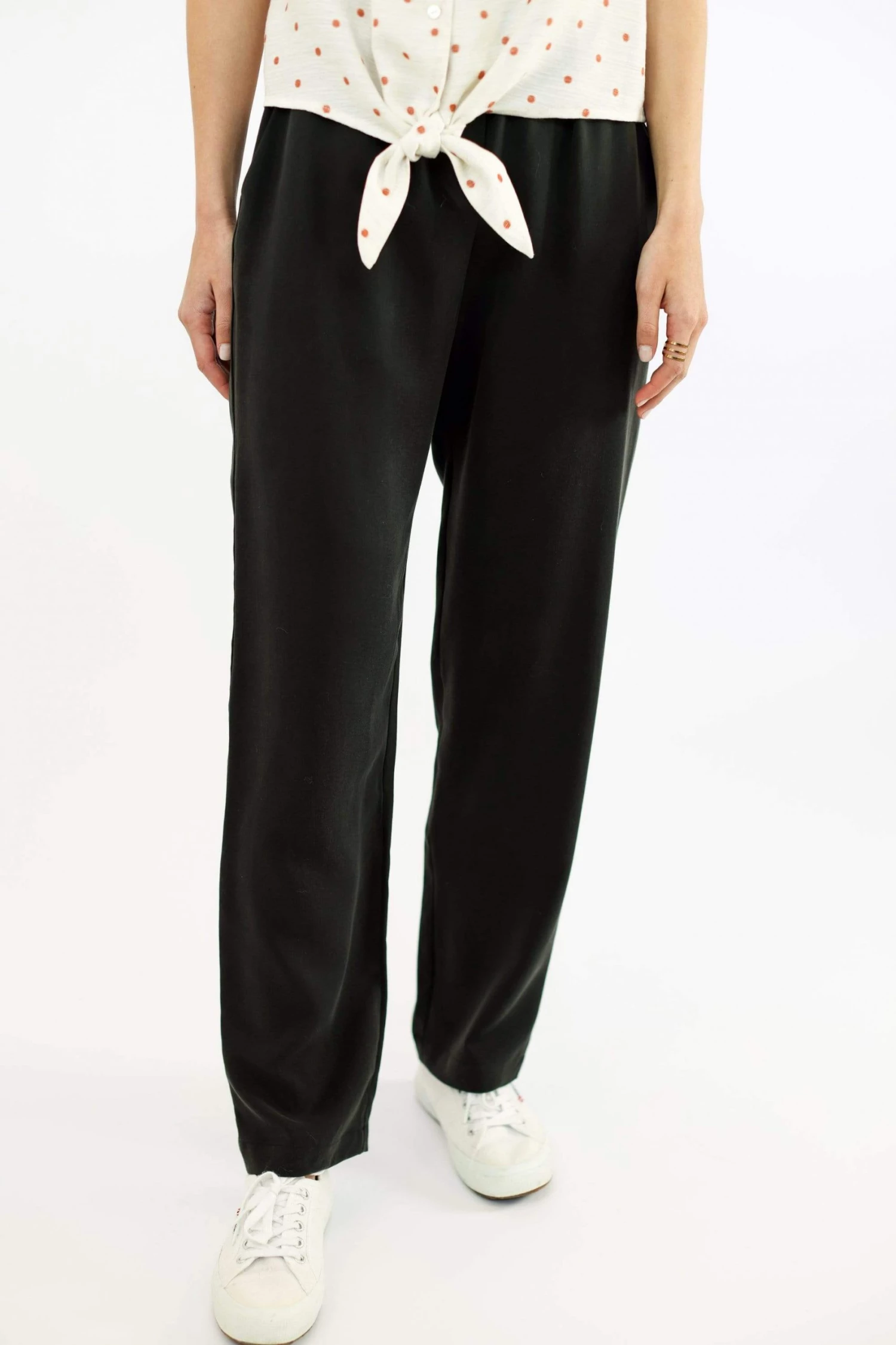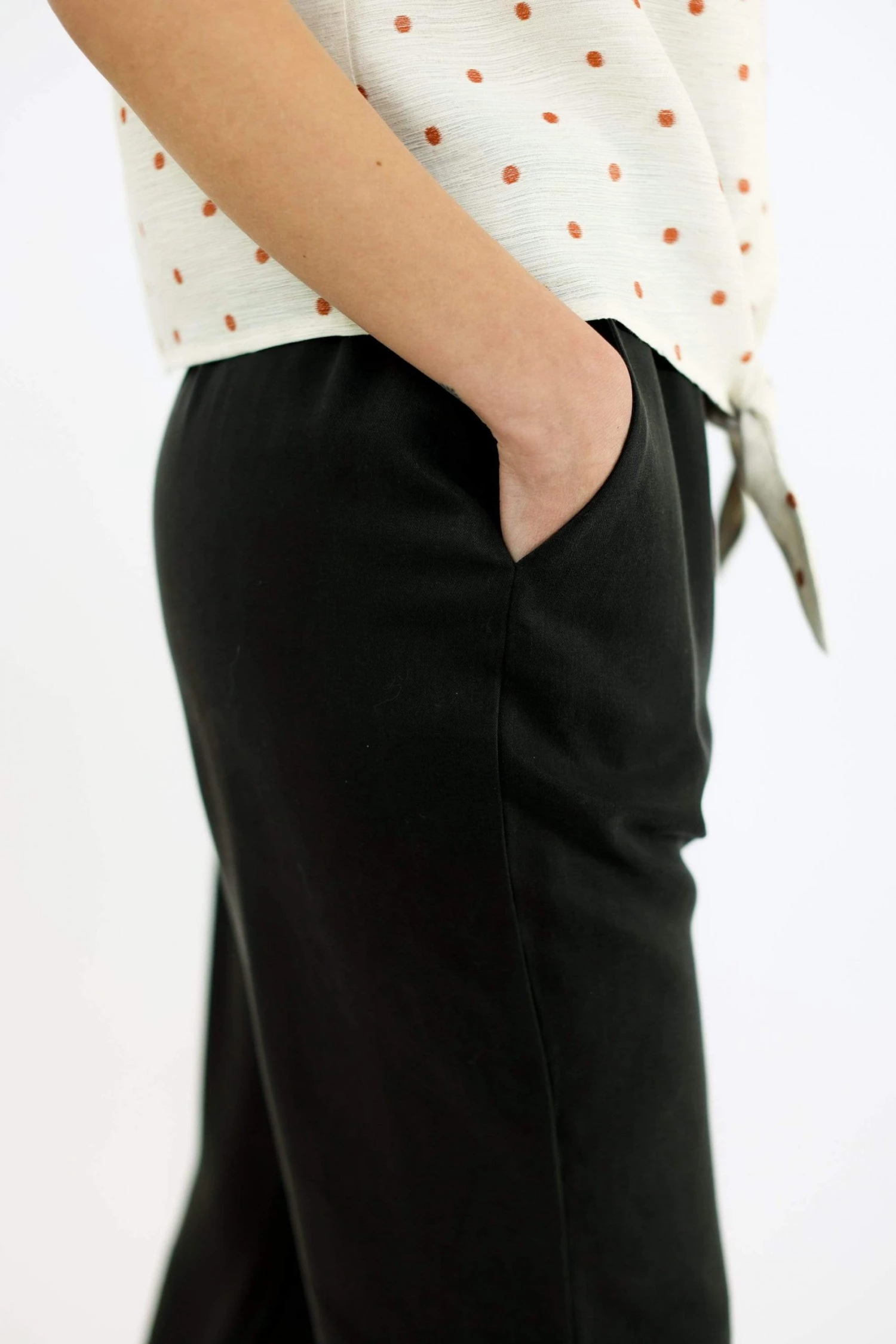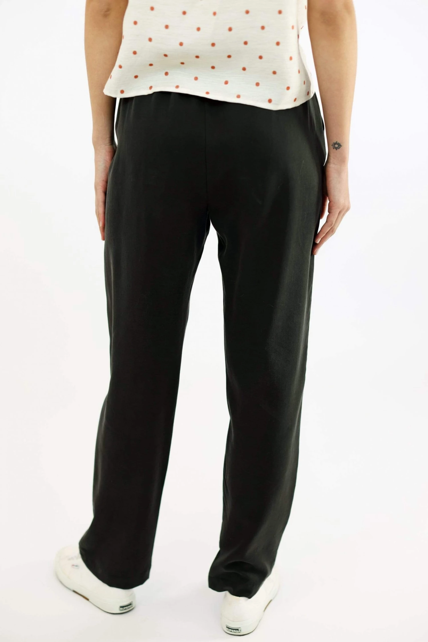 Your new favorite pants Adrienne in black! High-waisted, with practical side pockets. Wide leg cut and loose fit that makes it very comfortable and makes you look taller and slimmer! Style it with your white sneakers for an urban look or with your sandals for a Boho-Outfit 😉