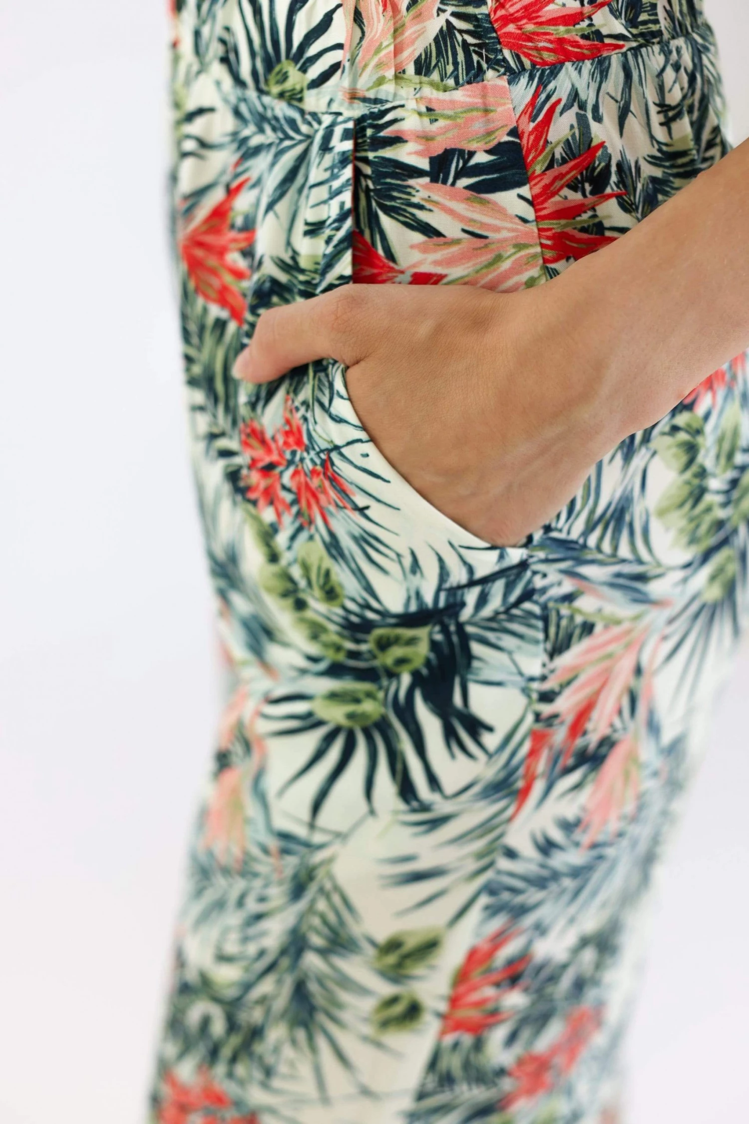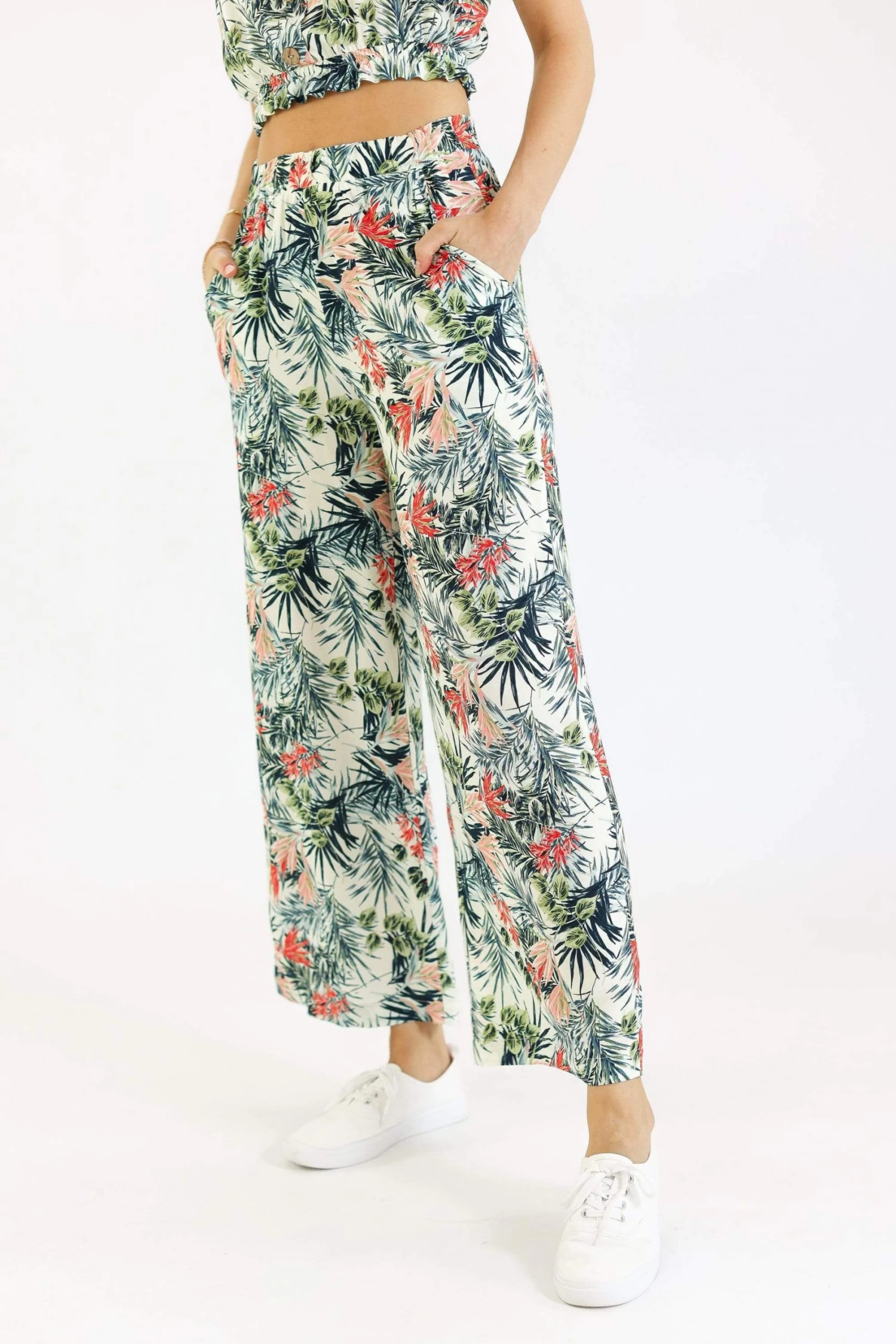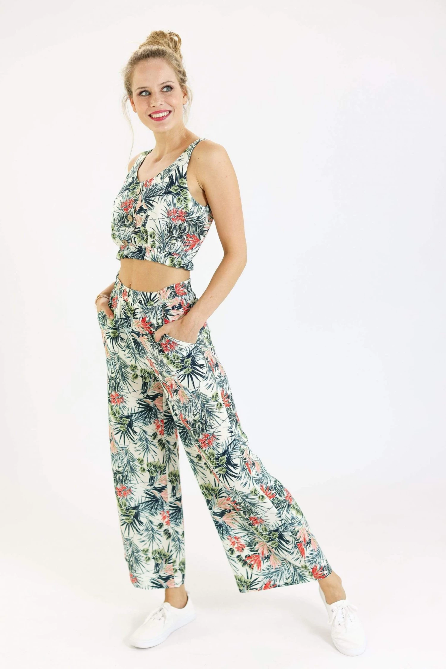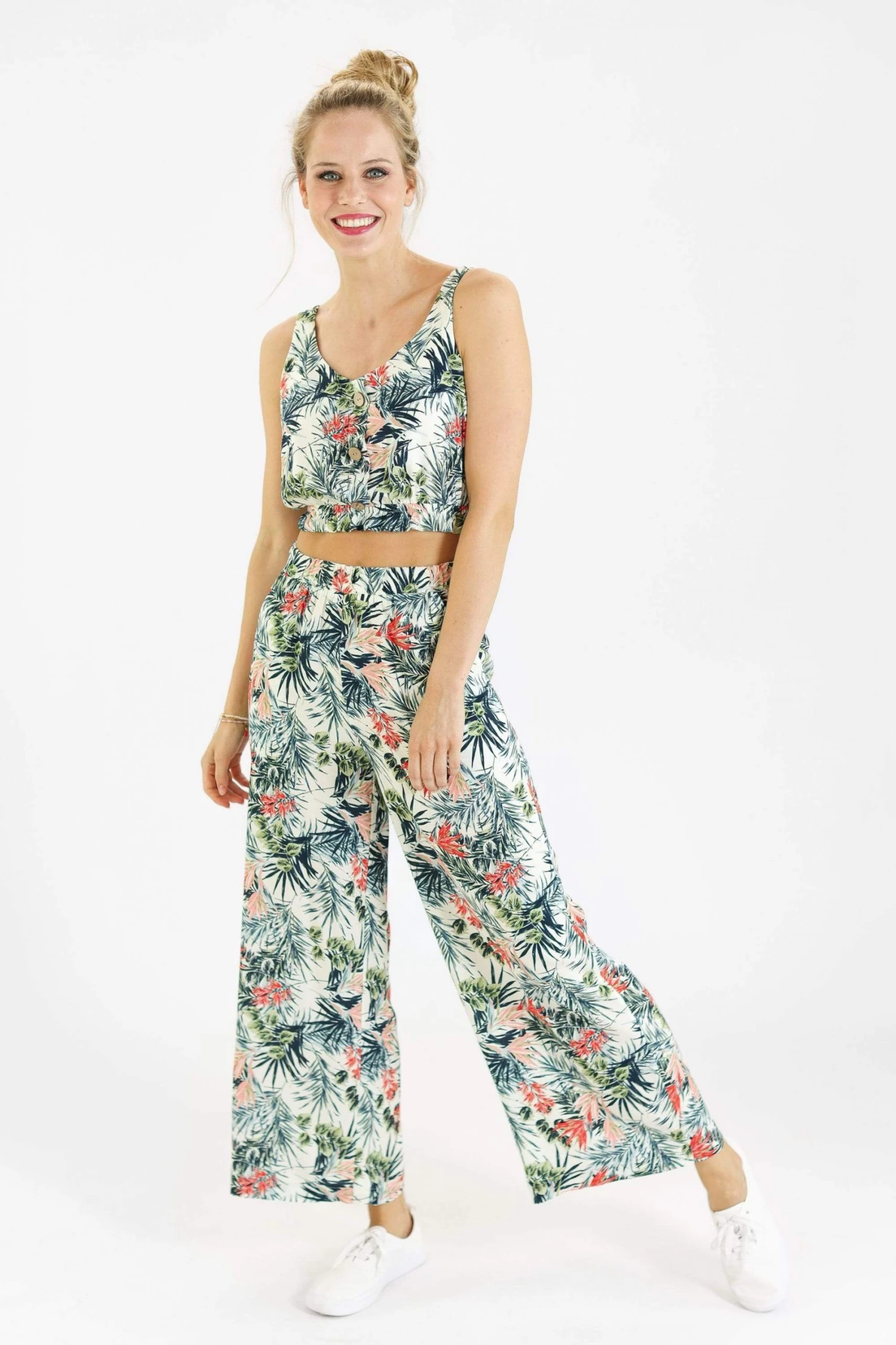 Pants Kos in a vibrant summery floral pattern! Absolutely chic and elegant they feature an elastic high waist and practical side pockets. The wide cuts make them airy and extremely comfortable. Combine it with white sneakers for an urban look or with sandals for a casual look (;