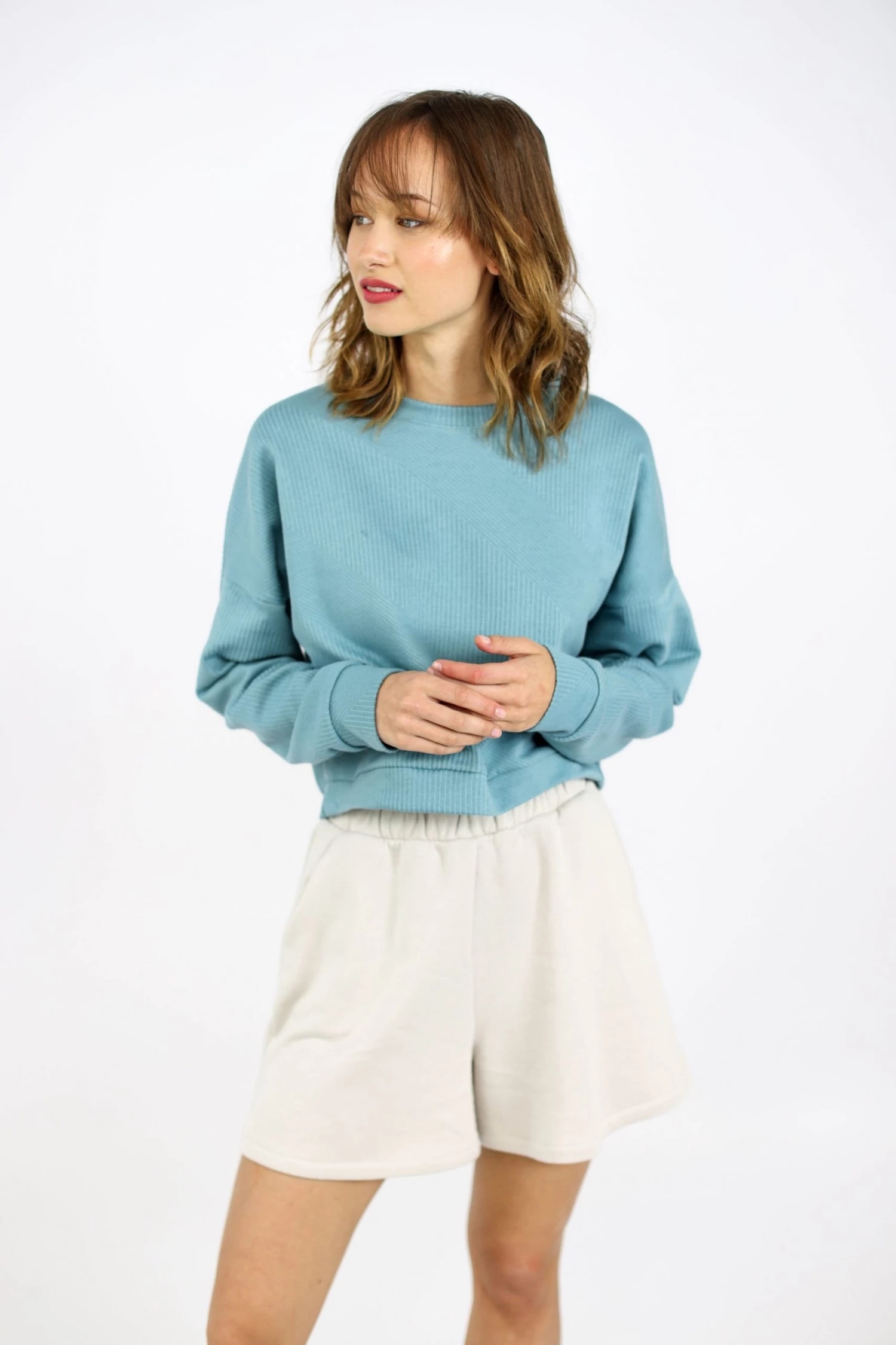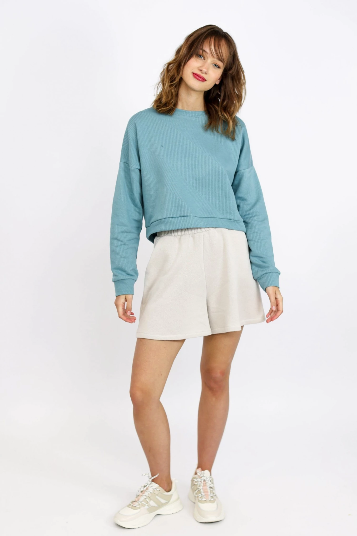 Old-school soft terry shorts in ice grey colour fitted with an elastic waistband. Perfect for your casual outfits!! Shorts made from cotton with a comfortable cut, fit nicely at the legs for a comfortable fit.Â