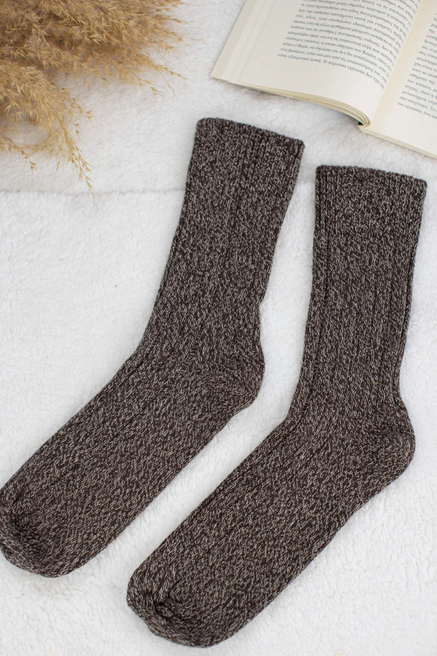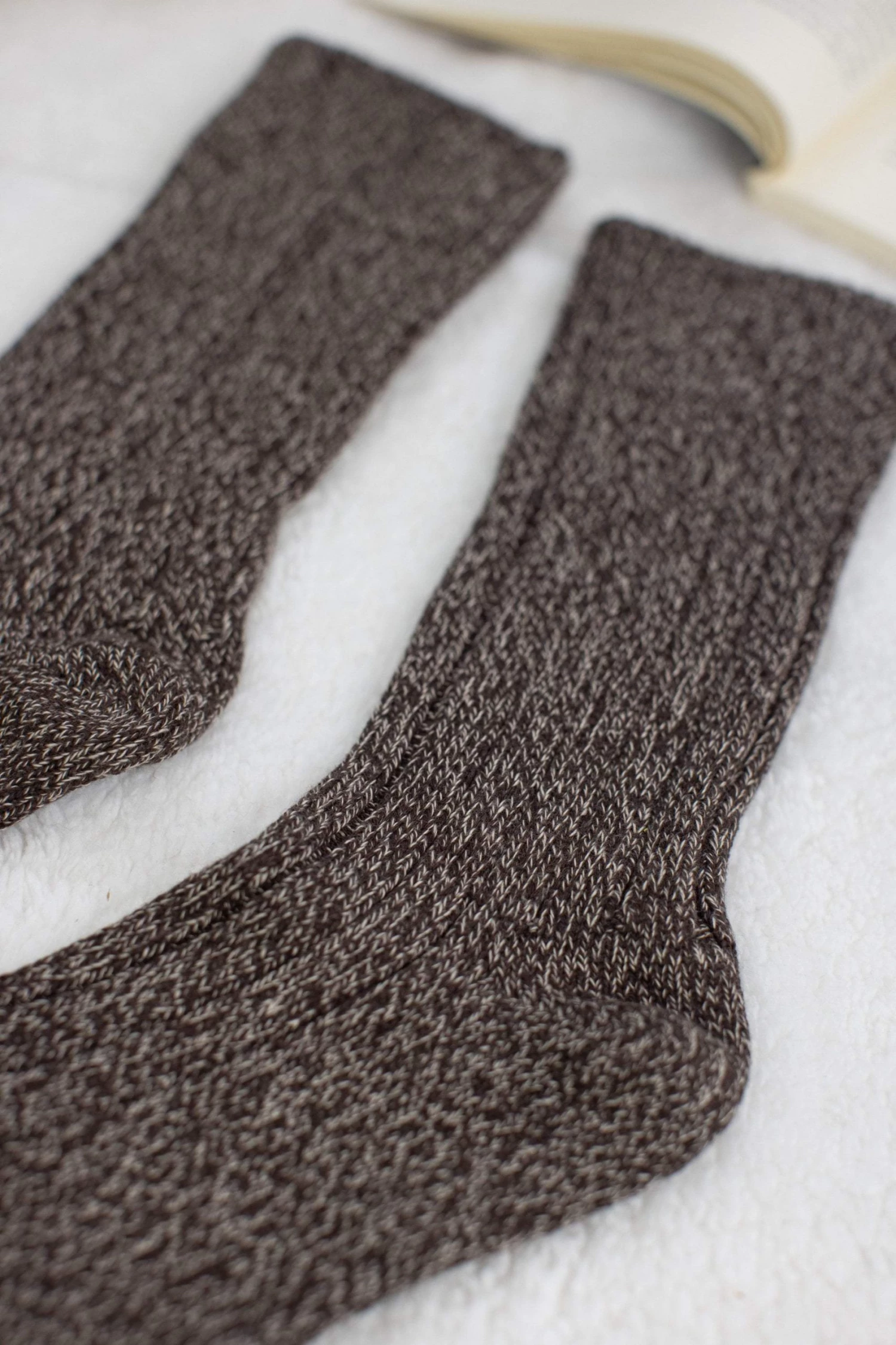 Socks “Happy Feet” in brown fabric! They’ll keep you warm yet stylish! Minimal and cool vibes is what these socks represent!Â