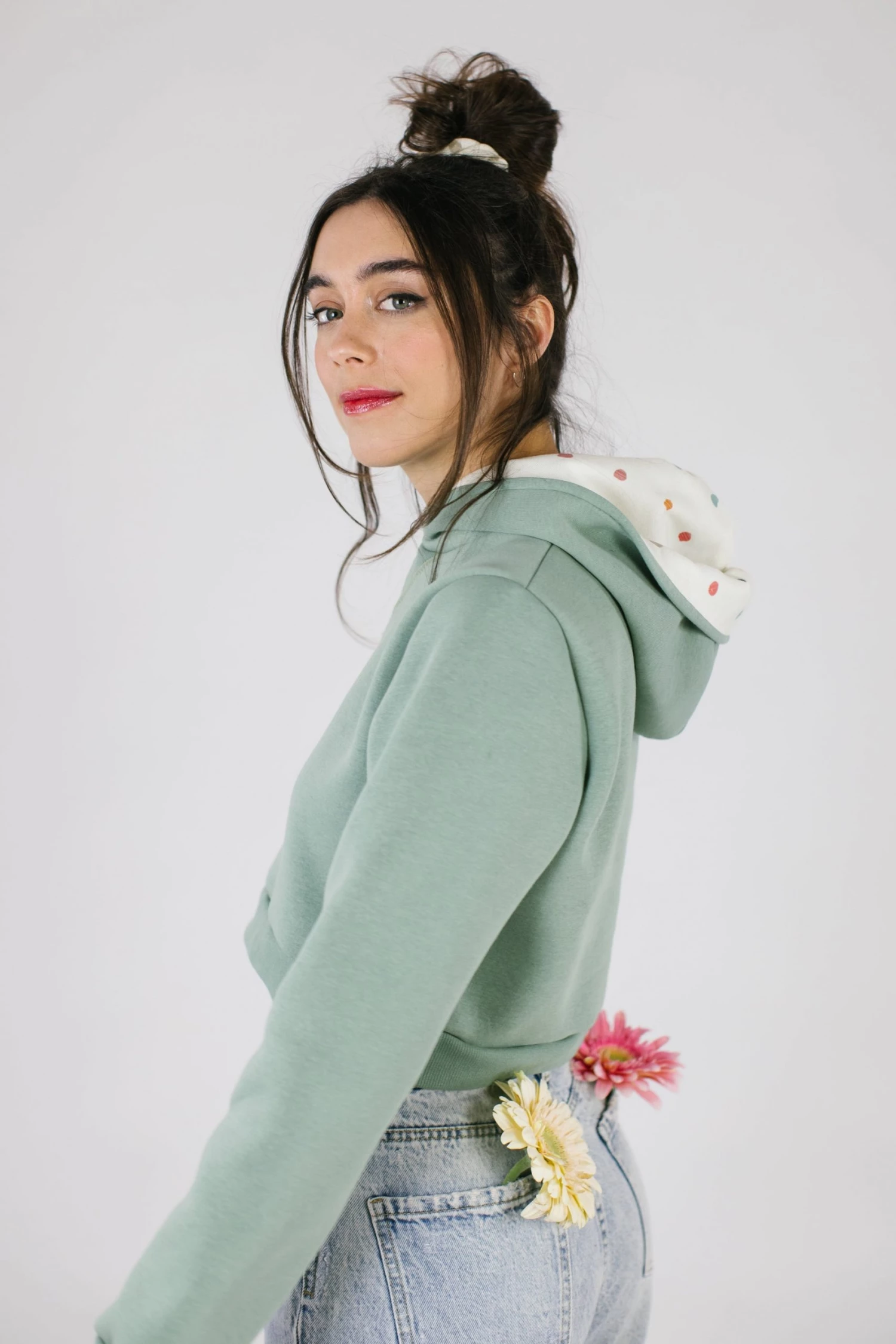 It has long sleeves, a hoodie with colourful polka dots inside and it goes perfectly with your high-waist jeans.