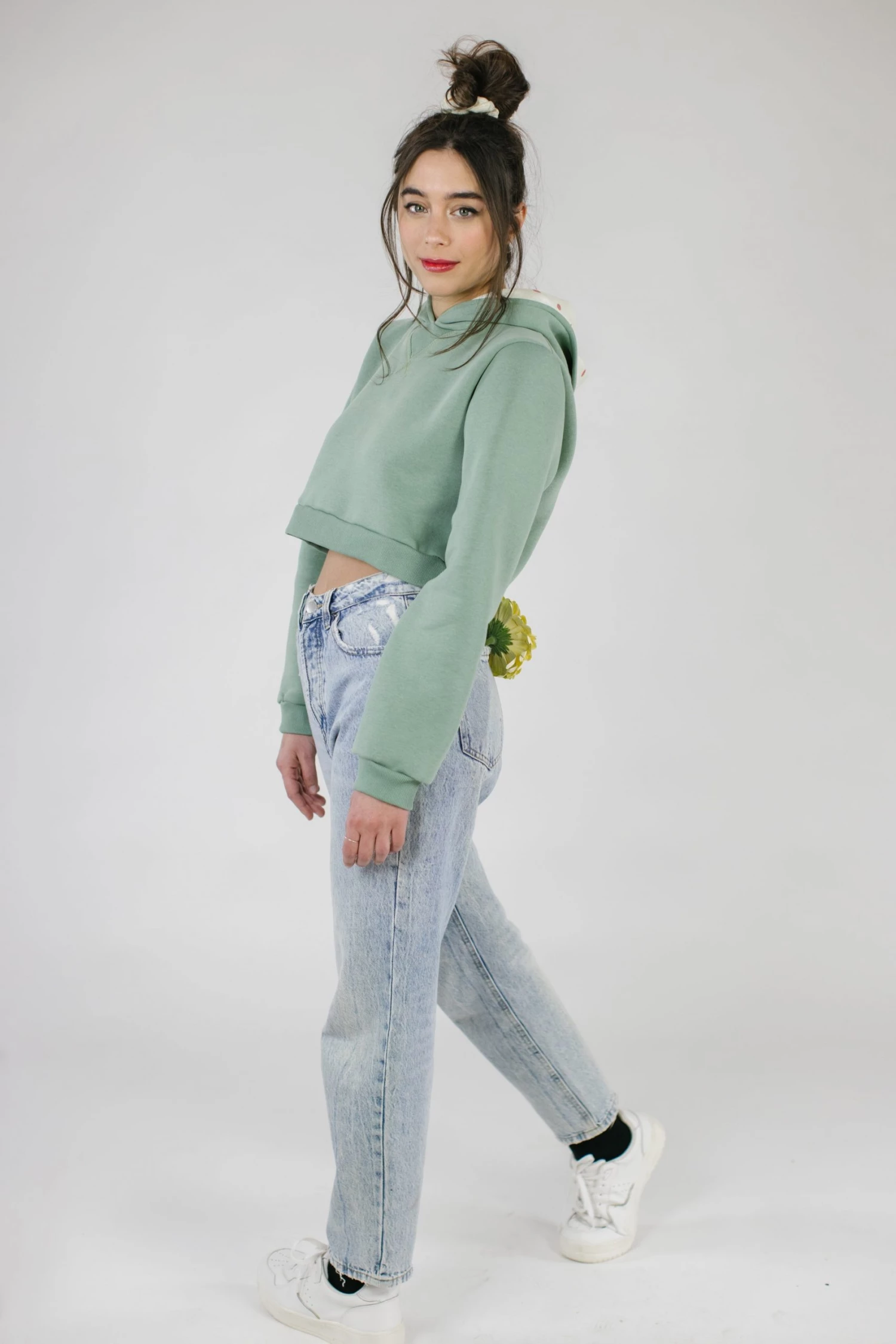 An oversized crop sweater in mint . Super casual, super comfy, super cute!